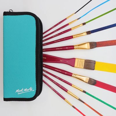 The Mont Marte Watercolour Brush Set is a beautiful selection of natural hair bristled brushes ideal for watercolour projects. The handy zip case is perfect for travel and helps to extend the life of your brushes.